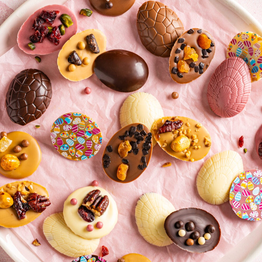 Perfekt für die Osterzeit – diese handgefertigten Schokoladenmünzen aus feinster belgischer Schokolade eignen sich ideal zum Dekorieren und Verschenken.