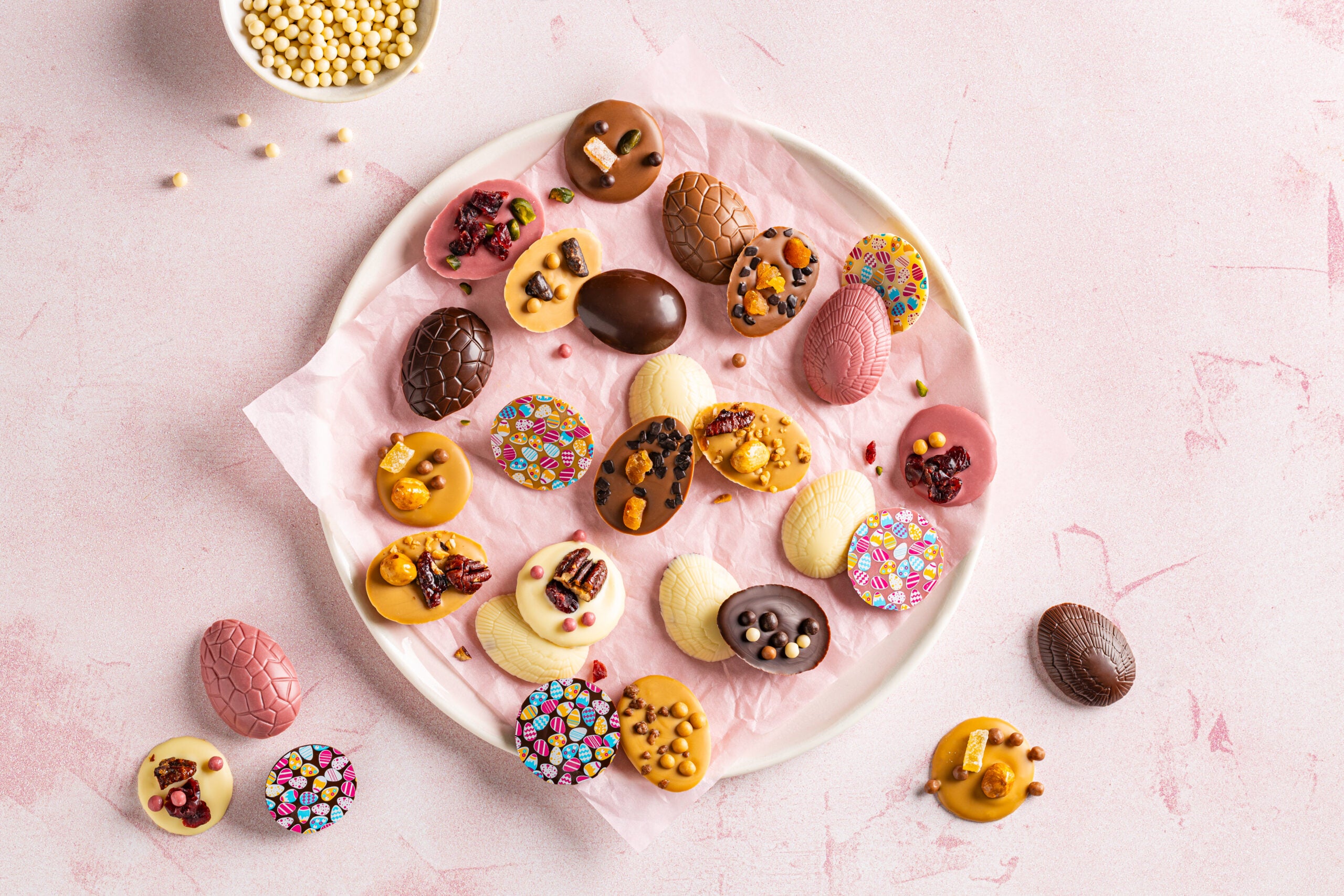 - Repeat the same process with different varieties of Callebaut Finest Belgian Chocolates, including Dark 811, Milk 823, White W2, and Ruby, to create a selection of eggs in different colors.